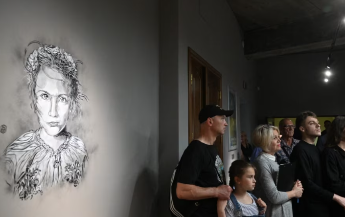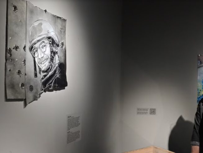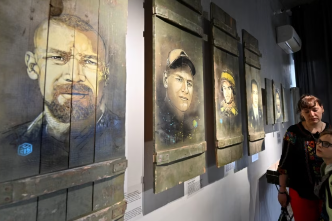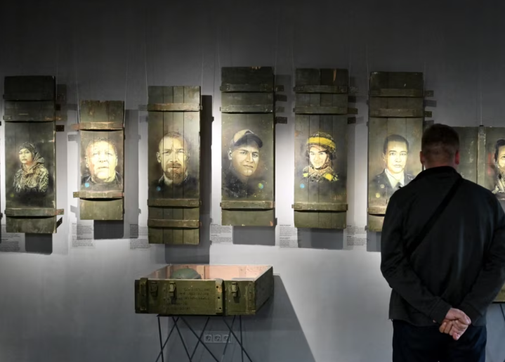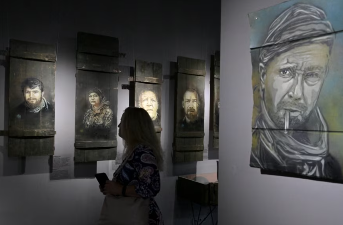 Portrete të ushtarëve të vdekur ukrainas të pikturuara nga artisti francez i rrugës, Christian Guemy, në copa arkash, janë shfaqur për publikun në Kiev. Ekspozita “Guerre En Ukraine” (Lufta në Ukrainë) është hapur në Qendrën e Ekspozitave të Muzeut të Luftës në kryeqytetin ukrainas./REL/