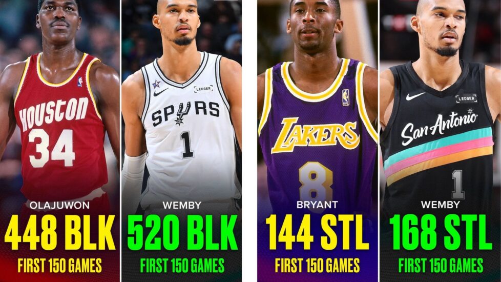 168 topa të rrëmbyer nga Wemby, janë 24 më shumë se Kampioni i ndjerë i Los Angeles Lakers.