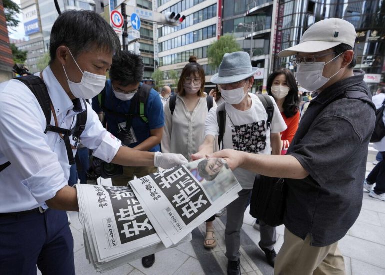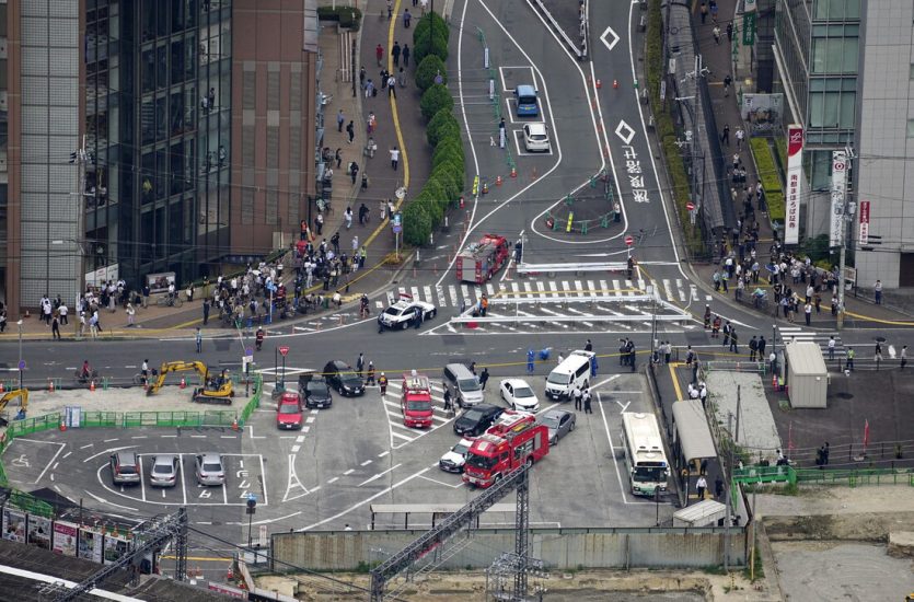Transmetuesi publik NHK raporton, duke raportuar se 41-vjeçari Tetsuya Yamagami u bllokua nga forcat e rendit menjëherë pasi qëlloi dy të shtënat e para.