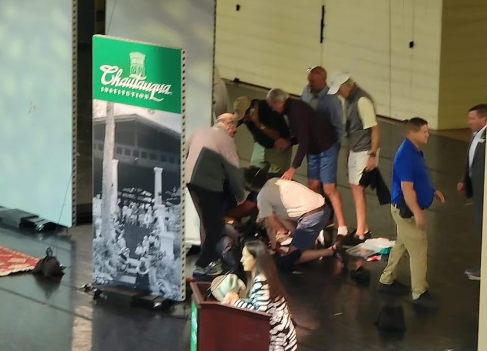 Gazeta Si – Një burrë me bluzë ngjyrë të errët dhe flokë të shkurtër. Këto janë pamjet e para të sulmuesit të Salman Rushdies, i përshkruar nga dëshmitarët si “një furi”, i cili u hodh në skenë i veshur me një maskë të zezë dhe mundi të tërbohej mbi viktimën dhe të luftonte me agjentët.