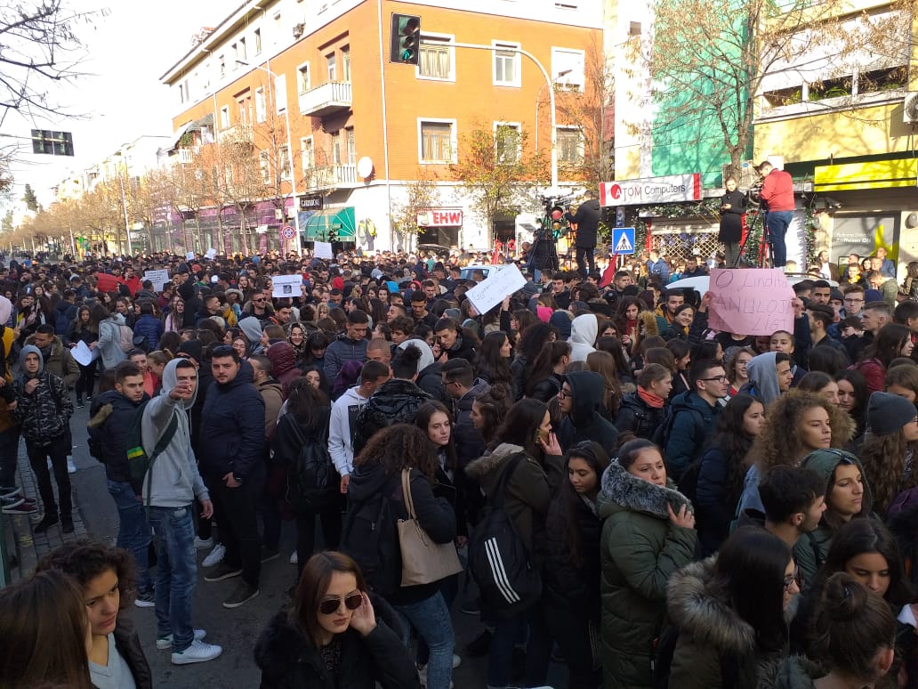 “Në ditët e para klasat ishin plot, nuk iknim në protestë se na kërcënonin se do na vinin mungesa”, tregon ajo në mesin e një grupi të madh studentësh. “Tani nuk kanë çfarë të na bëjnë se nuk mund të na ngelin të gjithëve. Askush nuk mund të na ndalë”, përfundon ajo duke nxituar t’u bashkohet miqve që po marshojnë me pankarta në duar.