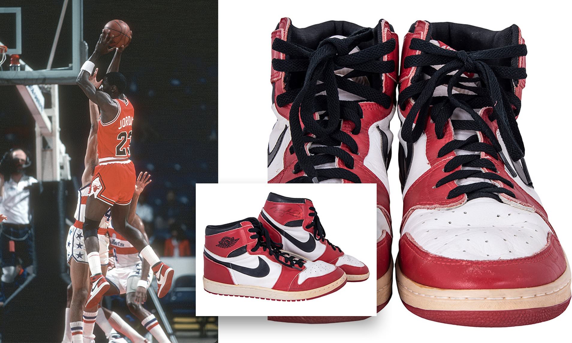 Këpucët e popullarizuara nga lojtari i Chicago Bulls gjatë karrierës së tij profesionale, Air Jordan të dizenjuar nga Nike, të bëra ekskluzivisht për të dhe më vonë të tregtuara me sukses të jashtëzakonshëm, janë shumë të lakmuara për çdo adhurues të basketbollit. Modelet që veshi vetë Jordan janë nxjerrë në ankand gjatë viteve për shuma stratosferike, por të fundit kanë thyer rekorde. Portali eBay nxorri në shitje një palë atlete të para që ylli përdori në NBA. Këto janë atlete origjinale në të kuqe dhe të bardhë, të cilat shoqërohen nga dy palë lidhëse bardh e zi. Këpucët e papërdorura shfaqin gjithashtu një detaj tjetër domethënës: firmën e Jordan.