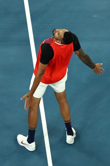Kirgios ka entuziazmuar publikun e “Melbourne Park” me disa numra të tij në lojë, si dhe me sjelljen e tij të zakonshme. “Bad boy” ka fituar një pikë me një shërbim poshtë këmbëve dhe ka festuar si Kristiano Ronaldo, duke imituar portugezin me të famshmen “Siuuu”. Sapo ka përfunduar ndeshje, ai ka pirë edhe një birrë, që ia ofroi një tifoz.