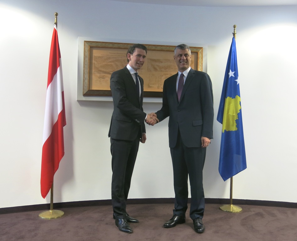 “Unë kam një qëndrim të qartë, qeveria federale e Austrisë pajtohet me çdo marrëveshje të arritur mes Kosovës dhe Serbisë. Askush nuk duhet të jetë kundër kësaj marrëveshje”, tha Kurz gjatë një konference të përbashkët për shtyp me Thaçin. Kancelari austriak, vendi i të cilit mban aktualisht presidencën e BE-së, theksoi se nuk do të ketë stabilitet në rajon dhe as perspektivë europiane pa një marrëveshje paqeje mes Kosovës dhe Serbisë.