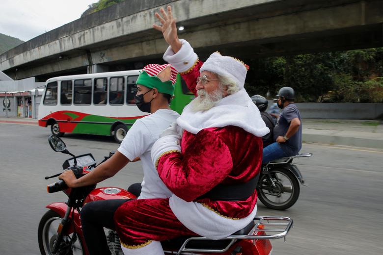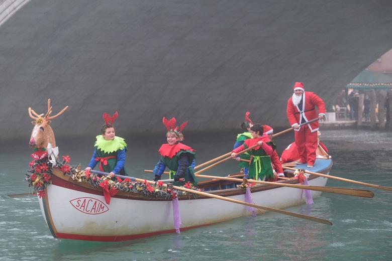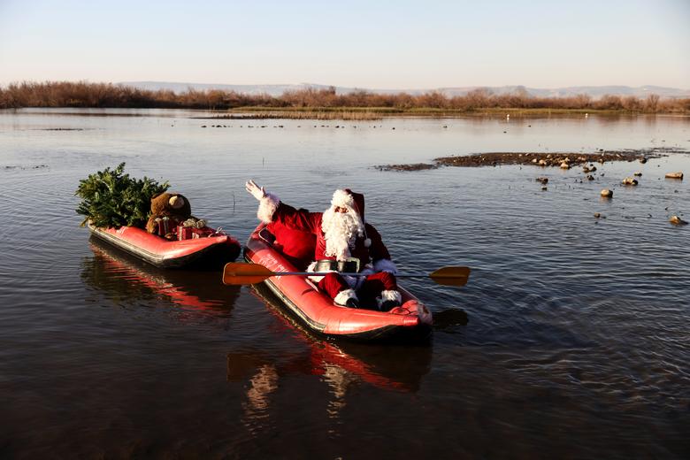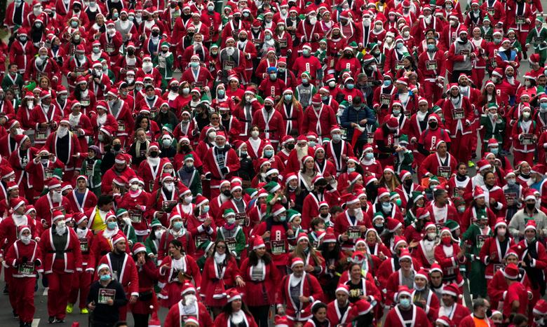 Njerëz të ndryshëm janë veshur si babagjyshi i vitit të ri në mbarë botën por ndryshe nga gjendja klasike e babagjyshit i cili supozohet të qëndrojë i ulur në slitën e tij dhe të japë dhurata, babagjyshat në foto protestojnë, janë postierë, bëjnë ski, ose lundrojnë me varkë. /Reuters/