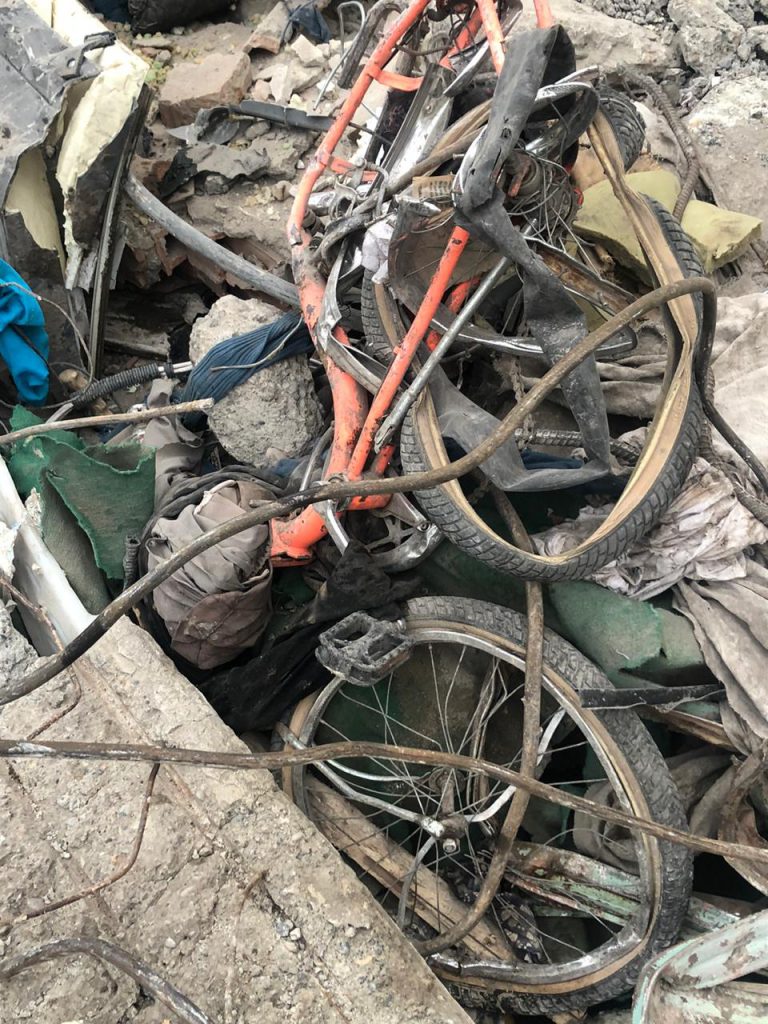 Ai më në fund dallon një çantë që i ngjan se është e bashkëshortes. “Do ta marr. Dua të kemi diçka nga shtëpia e familjes”, thotë dhe ulur mbi rrënojat e pallatit të shembur, nuk përmbahet, por qan.