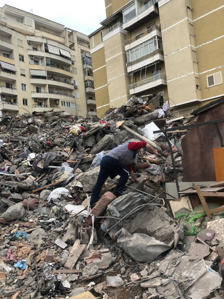 Ylli gërmon mes rrënojave. Është kthyer në vendin ku deri në datën 26 nëntor kishte shtëpinë e tij. Tashmë aty ka mbetur një mal me gurë, bolierë, çanta të flakura, rroba…