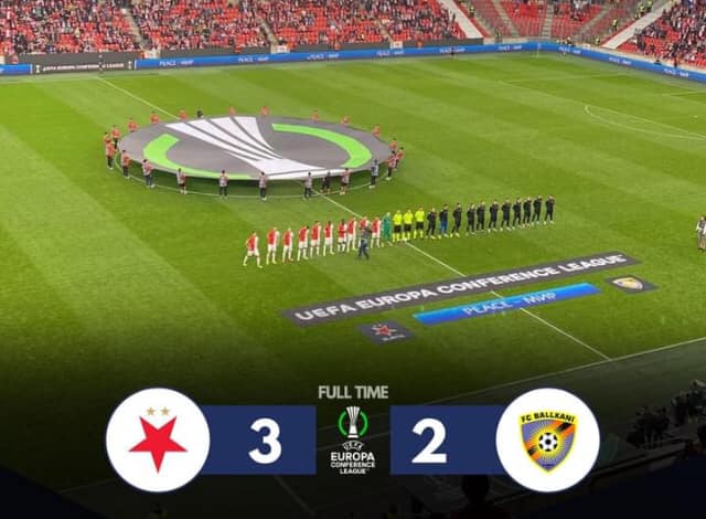 Gazeta Si – Ballkani ka bërë një tjetër paraqitje pozitive në fazën e grupeve të Ligës së Konferencës, pavarësisht se është mundur. Skuadra e trajnerit Ilir Daja luajti si e barabartë në Pragë, ku u mund 3-2 nga Sllavia. Të 5 golat u shënuan në pjesën e parë.