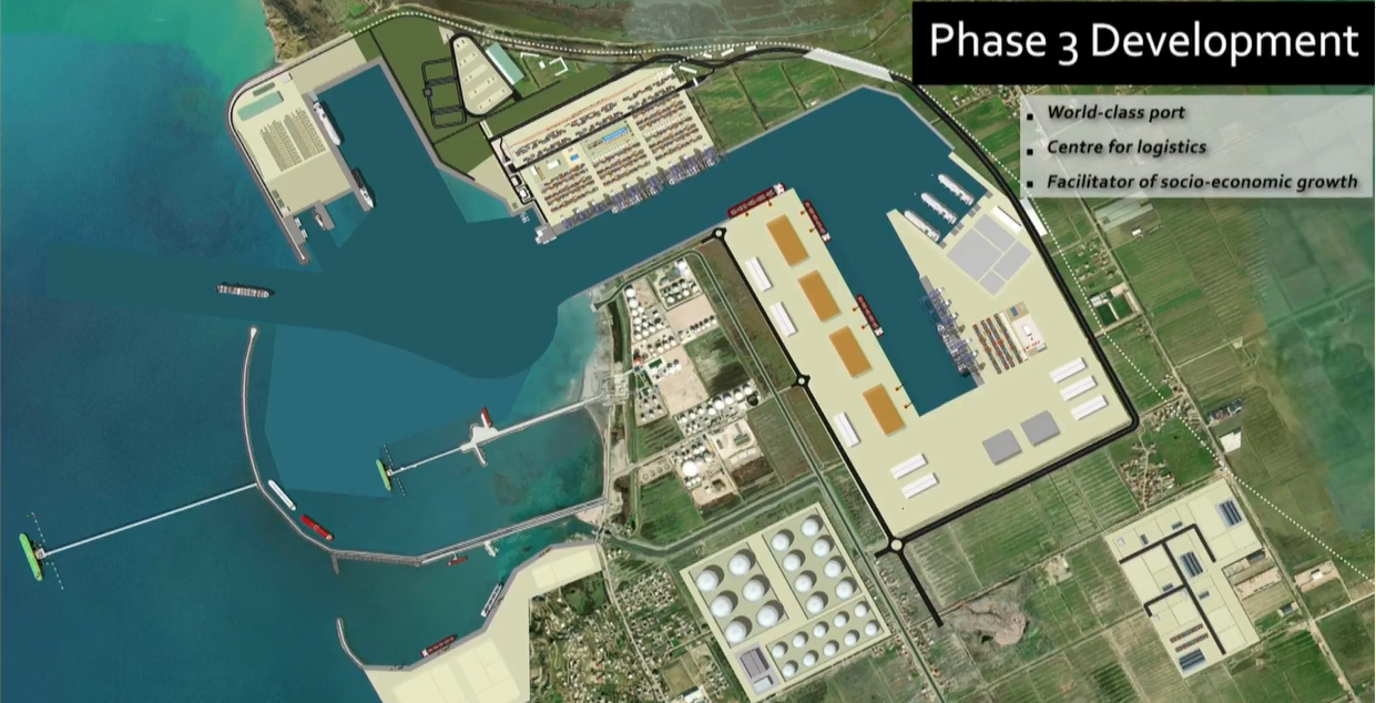 Porti i ri do të zgjerohet deri në 400 ha tokë dhe do ndahet në tre zona. Në zonën veriore do të jenë kontejnerët, në jug cargot e përgjithshme dhe në qendër, hidrokarburet.