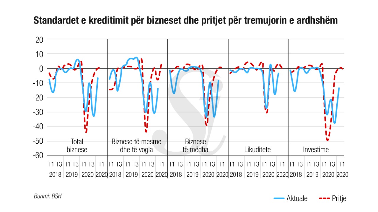 Gjatë tremujorit të dytë priten që të mos ketë ndryshime në standardet e kreditimit për bizneset e mëdha dhe disa lehtësime për biznesin e mesëm dhe të vogël .