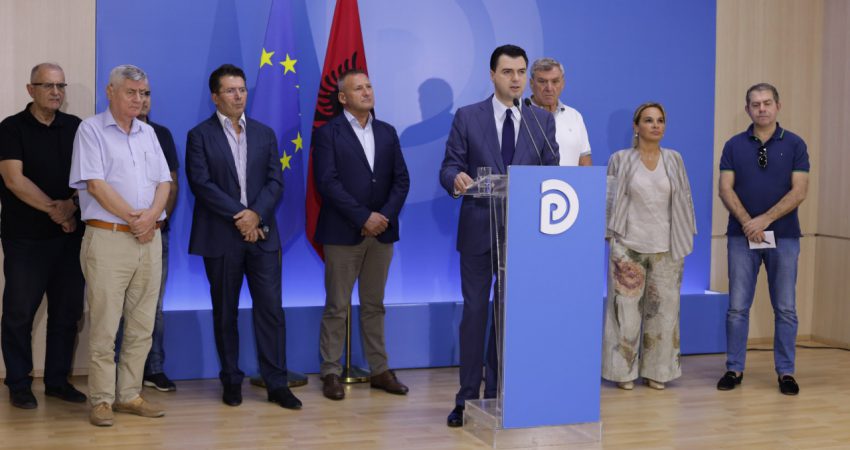 Pas takimit një orësh me aleatët dhe miratimit të ndryshimeve kushtetuese në Kuvend, Lulzim Basha, në emër të opozitës së bashkuar, përcolli një deklaratë politike pa specifikuar hapat konkret që do të ndërmarrë.