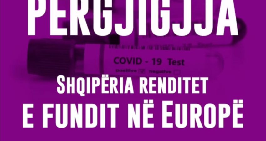 Në postimin e Bashës në rrjetet sociale shtrohet pyetja: “Cila është renditja e Shqipërisë për përqindjen e popullsisë të testuar për COVID-19, krahasuar me vendet e Evropës?