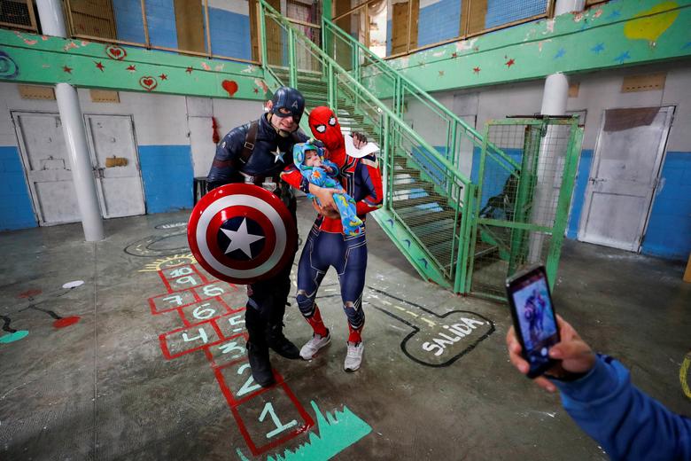 Vullnetarët argjentinas po përpiqen të sjellin pak gëzim për fëmijët që jetojnë me nënat e tyre në burg duke u veshur si superheronj si Batman, Iron Man dhe Princesha Elsa, si pjesë e një programi për të miturit vulnerabël.