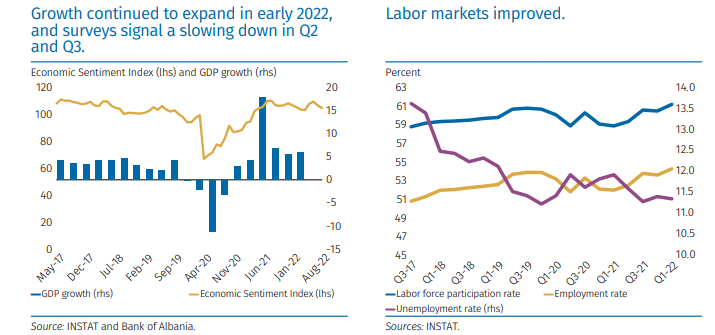 Nga Gazeta ‘SI’ – Banka Botërore parashikon rritje të mëtejshme të inflacionit në Shqipëri për shkak të luftës dhe krizës energjitike, shoqëruar me probleme në zinxhirët e furnizimit dhe luhatje në tregjet financiare që mund të pengojnë parashikimin e rritjes ekonomike të Shqipërisë. Për vitin 2023, BB parashikon rritje ekonomike 2.3% për Shqipërinë dhe 2.7% për 2024-n, duke mbetur përsëri poshtë niveleve të para tërmetit.