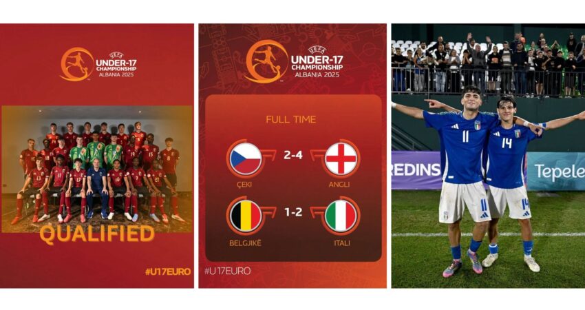 Pak minuta më parë u mbyllën ndeshjet e 3 në grupin B të Euro U17 që po zhvillohet në Shqipëri. Italia kalon në ½ finale si fituese e gr. B dhe do të ndeshet me Portugalinë më 29 Maj. Ndërsa Belgjika u rendit e dyta vetëm me golevarazh duke lënë jashtë Anglinë (që mundi Çekinë 4-2) dhe do të ndeshet me Francën në të njëjtën ditë.