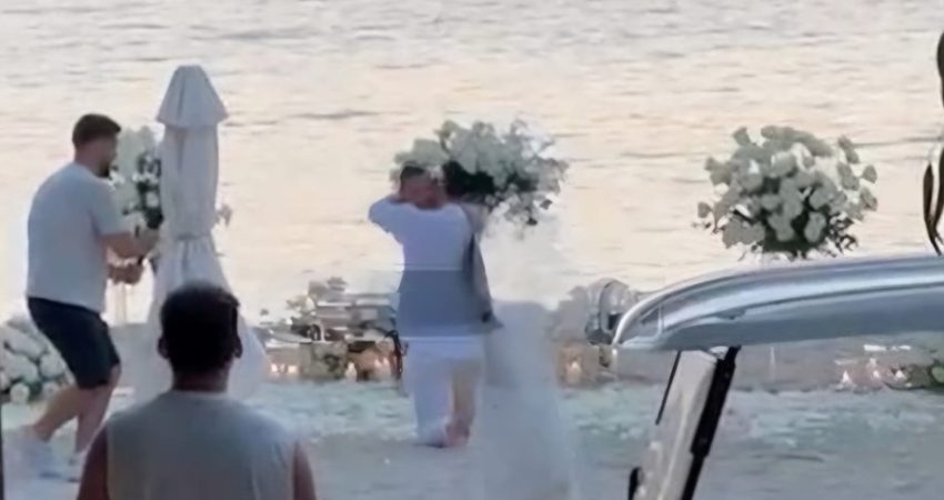 Në një video dallohet momenti “përrallor” kur Pavard i propozon për martesë partneres së tij në bregdetin e një resorti turistik në Sarandë.