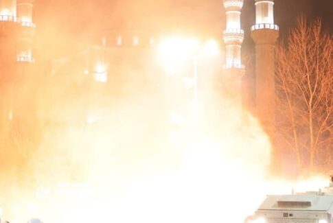 Molotovi dhe gazi lotjsellës nuk ka kursyer as besimtarët myslimanë të cilët ndodheshin brenda Xhamisë së Namazgjasë, pas orëve të agjërimit në Muajin e Shenjtë të Ramazanit. Shumë besimtarë janë detyruar të largohen nga Xhamia.