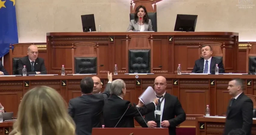Kur deputetët demokratë iu afruan foltores për ta kundërshtuar, Spiropali kërkoi 5 minuta pushim.