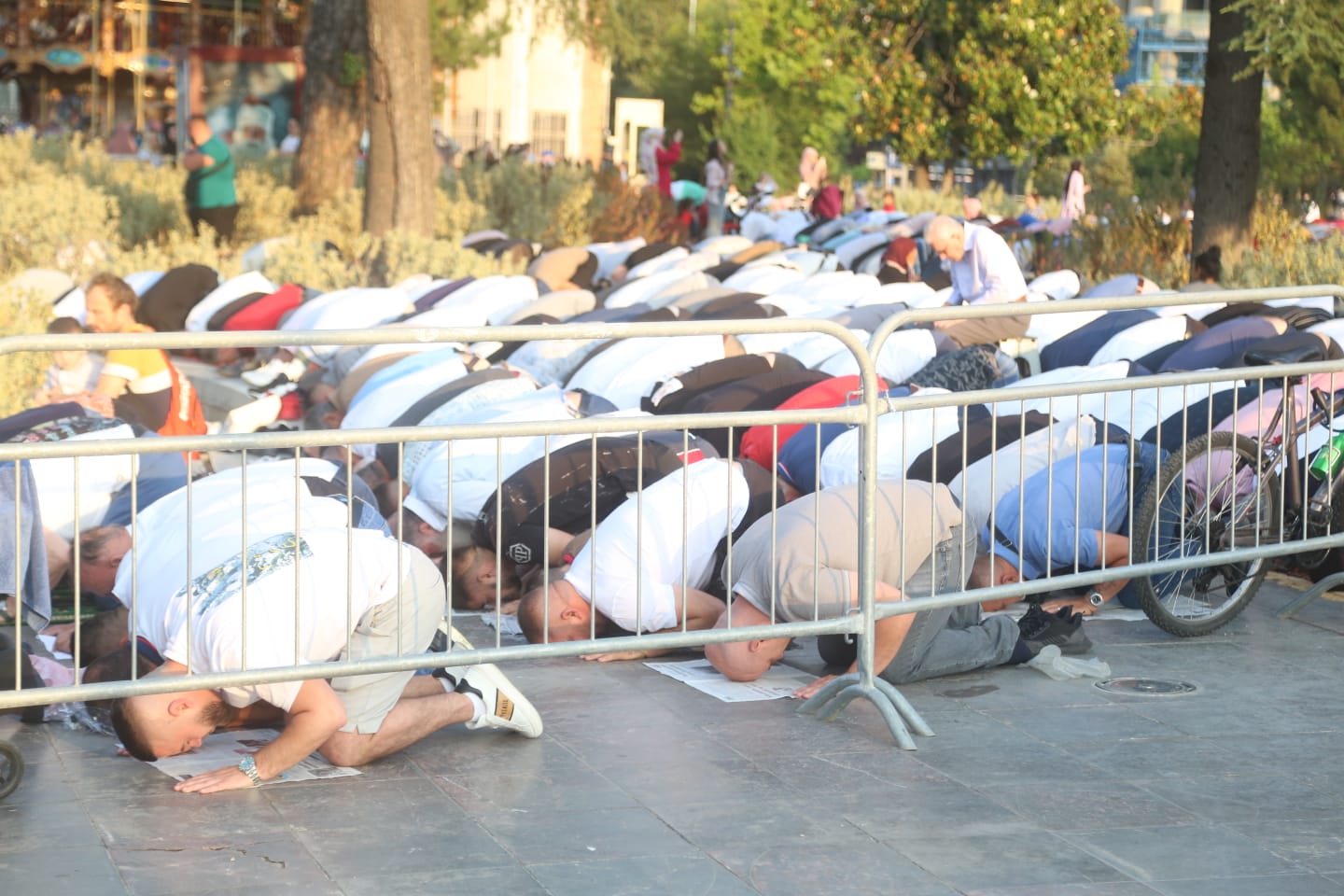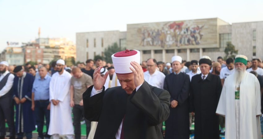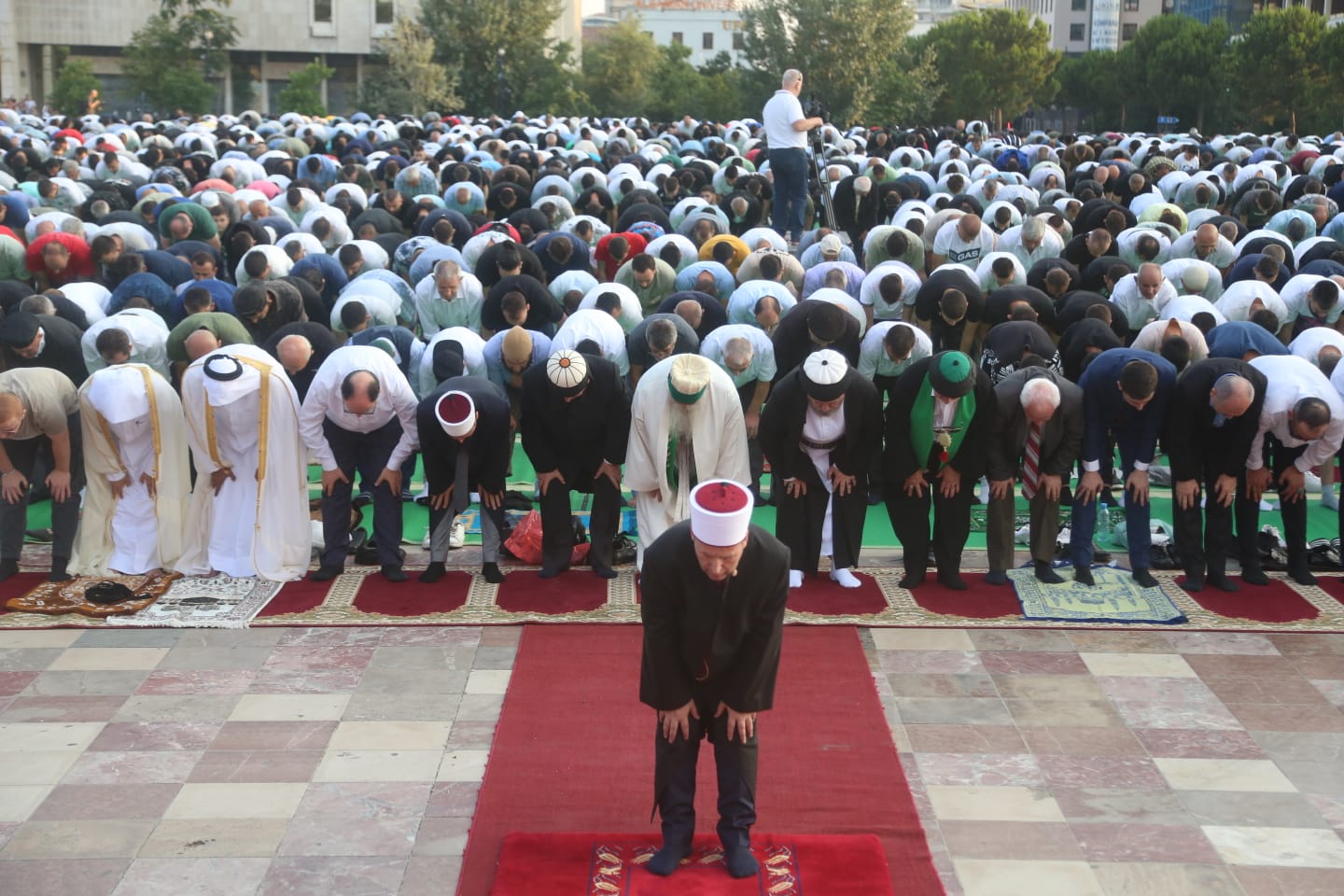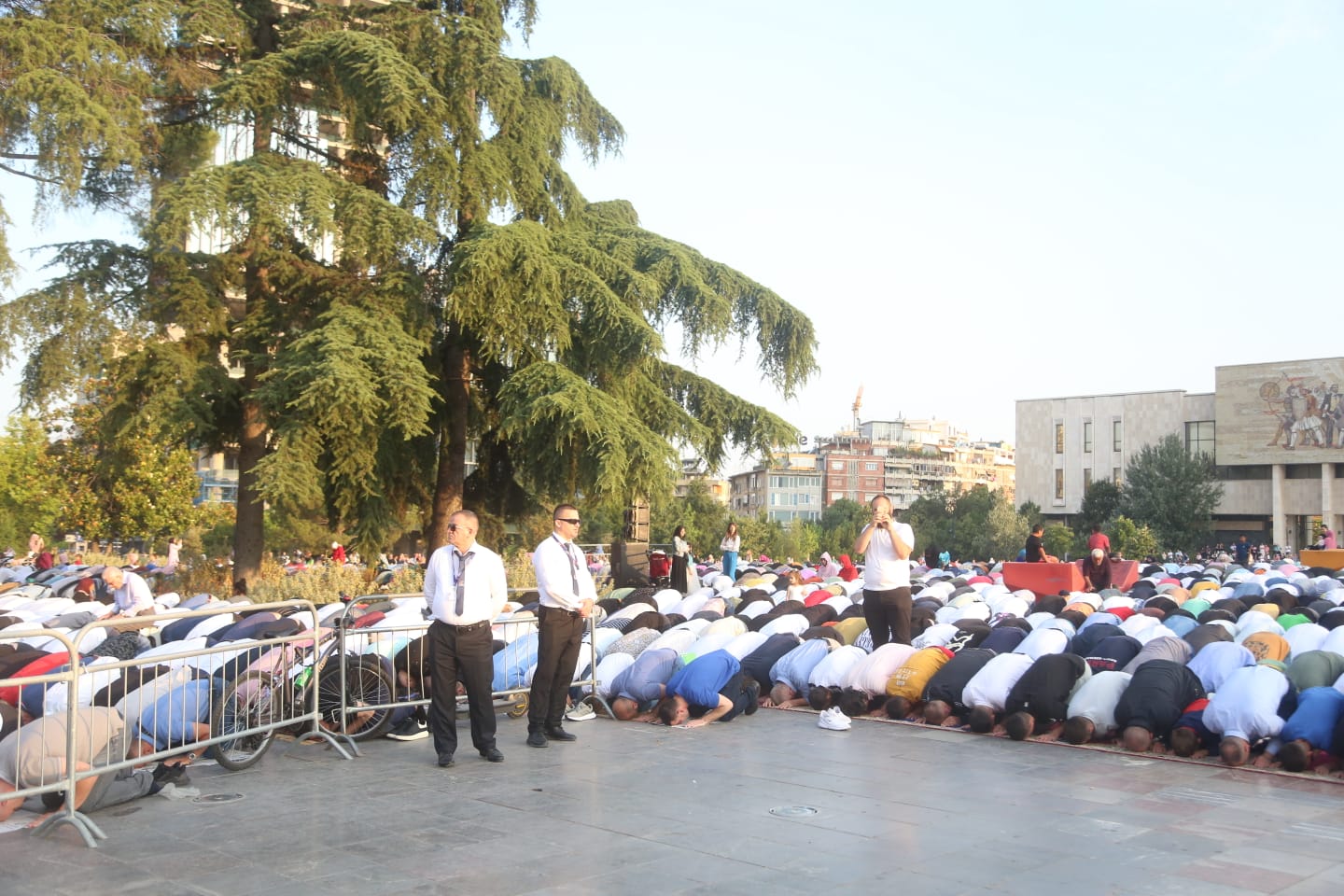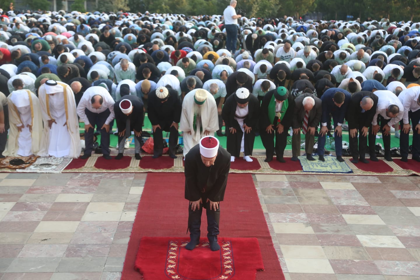 Mijëra besimtarë myslimanë u mblodhën këtë të mërkurë në mëngjes në sheshin ‘Skënderbej’ për faljen e namazit të Kurban Bajramit. Falja nisi në orën 06:00.