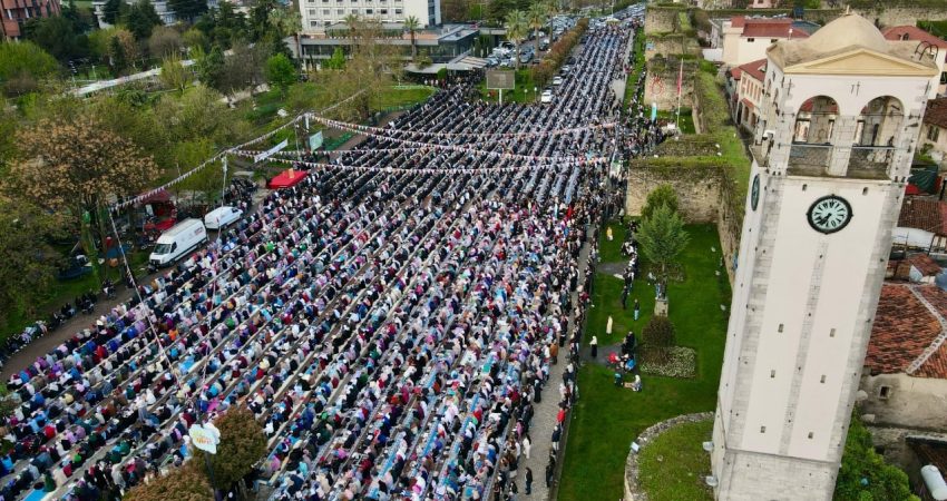 Nga Gazeta ‘SI’ – Pas një muaji agjërimi e sakrificash, besimtarët myslimanë festojnë sot Fitër Bajramin. Komuniteti Mysliman i Shqipërisë dhe besimtarët të shumtë u mblodhën në Sheshin “Skënderbej” për faljen e Namazit