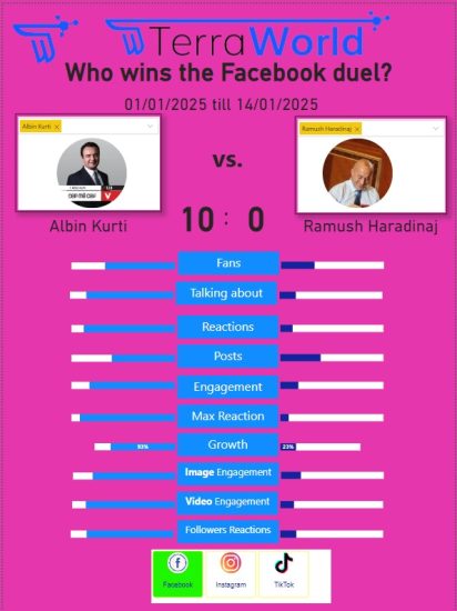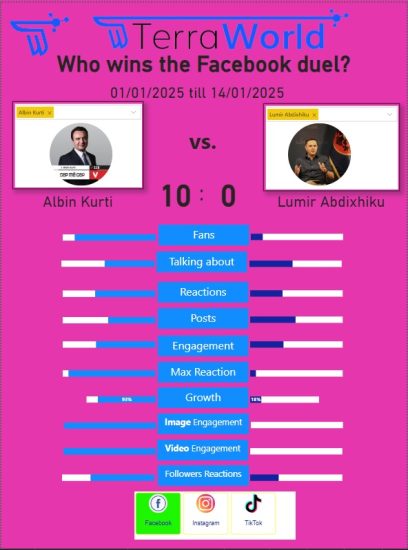 Por sipas një analize të detajuar, të sjellë nga Terra.marketing, (një kompani e analizimit të të dhënave digjitale dhe e marketingut digjit) vetëm kryeministri Albin Kurti ia ka dalë ta shndërrojë këtë rrjet social në një mjet të fuqishëm komunikimi, duke lënë pas liderët e opozitës dhe duke i mbajtur ndjekësit të përfshirë e aktivë.