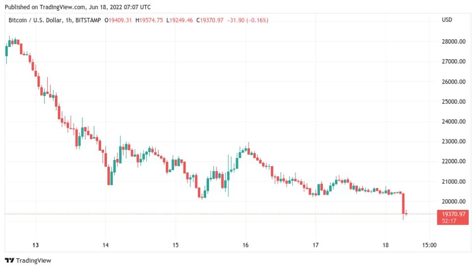 Të dhënat konfirmojnë se Bitcoin ra nën 20.000 dollarë për herë të parë që nga dhjetori 2020, duke arritur nivelet më të ulëta.