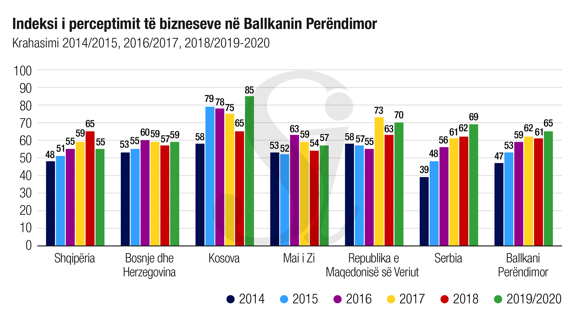 Megjithëse përmirësimet janë të dukshme në pothuajse të gjitha ekonomitë e Ballkanit Perëndimor, ato janë më të spikaturat në Kosovë (+19 pikë), dhe Mali i Zi dhe Serbi (+7 pikë secila). Në anën tjetër, Shqipëria ka pësuar një rënie të ndjeshme (-10 pikë) në ndjesitë pozitive, duke qenë ekonomia e vetme në rajon me rënie në përitshmëritë. Ndërsa tre ekonomitë e rajonit që kanë përjetura rritje të pritshmërive pozitive thonë se kjo është nxitur për shkak të stabilitetit makroekonomik, investimeve në infrastrukturë dhe një komunitet biznesi në rritje të sigurt. Ndërsa përballë një sfondi të paqëndrueshmërisë politike, ekonomia e Shqipërisë është përballur me një rritje të ngadaltë të ndërlikuar edhe si pasojë e një tërmeti shkatërrimtar.