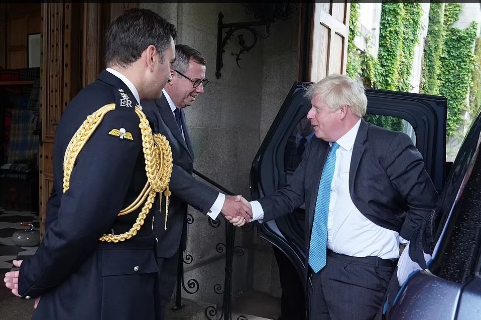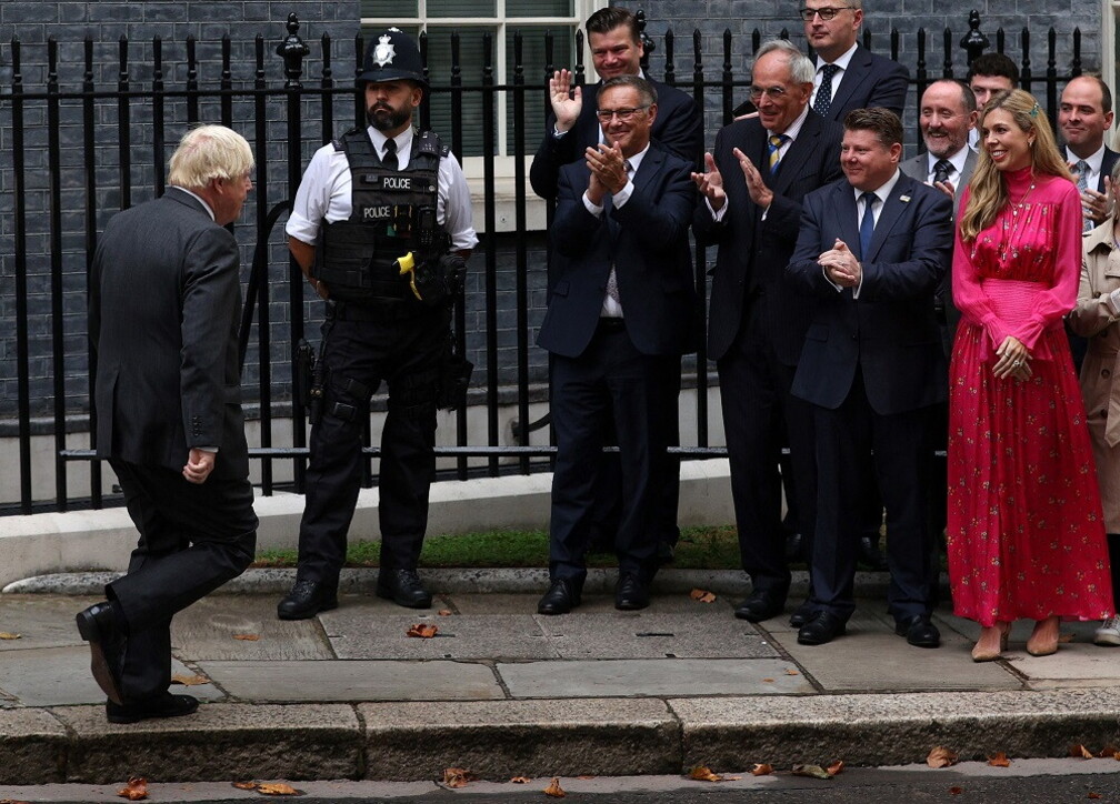 Johnson është shoqëruar me duartrokitje nga bashkëpunëtorët e tij dhe më pas ka marrë “bekimin” e Mbretëreshës para largimit.