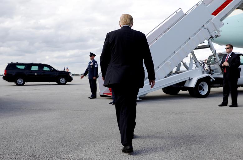 Presidenti Donald Trump ecën pas largimit të tij nga Florida, pasi raporti i prokurorit Robert Muller për bashkëpunimin me Rusinë e liroi nga të gjitha akuzat.