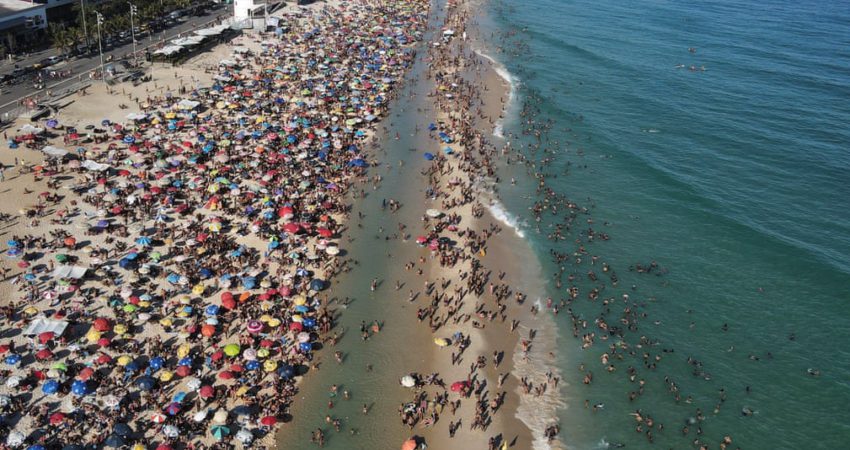 Kjo foto është shkëputur në Rio de Janeiro, Brazil, ku dallohen turma të mëdha njerëzish pa mbajtur distancë në plazhin Ipanema
