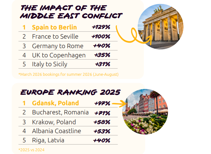 “Në vitin 2025, udhëtarët kanë preferuar gjithnjë e më shumë destinacione që ofrojnë balancë mes përvojës, çmimit të përballueshëm dhe më pak turmave, duke rritur popullaritetin e “destinacioneve në rritje të heshtur” dhe atyre me vlerë më të mirë për paratë. Megjithatë, në mars 2026, zhvillimet gjeopolitike në Lindjen e Mesme ndikuan përkohësisht në ndryshimin e kërkesës, duke e zhvendosur atë drejt destinacioneve alternative”, thekson raporti.
