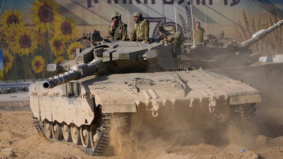 Teksa flet, nga frëngjitë e tankeve “Merkava 4” rreth post-komandës, artileritë vazhdojnë të vëzhgojnë godinat e fundit shumëkatëshe që janë ende në këmbë.
