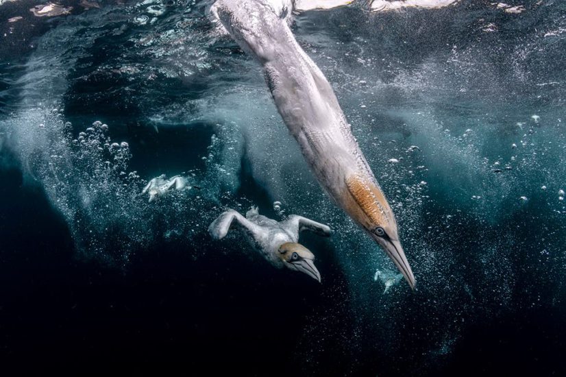 Vendin e dytë e mori fotografi Henley Spiers me një fotografi të zogjve të detit teksa zhyten në ishujt Shetland në Skoci.