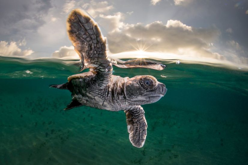 Vendi i tretë i shkoi fotografit Matty Smith për imazhin e një breshkë të porsalindur që shëtiste në det për herë të parë./BBC/