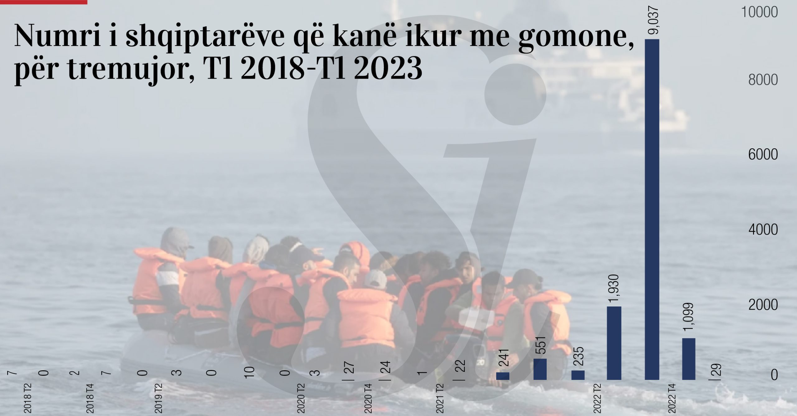 Referuar të dhënave nga autoritetet angleze rreth 12.000 shqiptarë mbërritën me gomone– kombësia më e madhe nga të gjithë ata që kryen kalimin, duke përbërë 27% të të gjithë mbërritjeve me varka të vogla në vitin 2022.