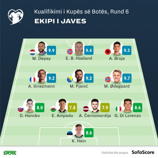 Formacioni me i mire, sipas Sofascore. Gazeta Si, 9 shtator 2021