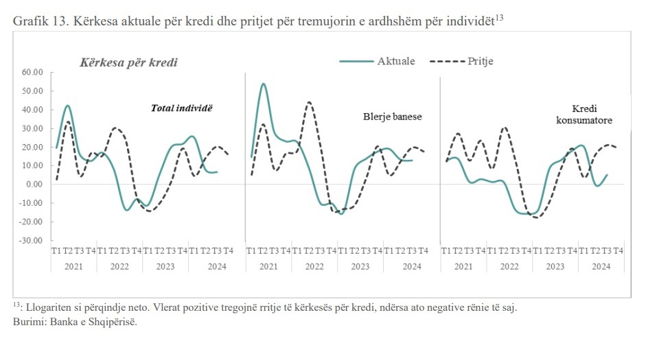 Një anketë e BSH-së, tregon se bankat tregtare dhanë më shumë kredi për individë gjatë tremujorit të tretë të 2024-s, duke vlerësuar një rritje të aftësisë paguese të tyre dhe një historik të mirë të punësimit. Përveç një banke të vetme, të gjitha bankat e tjera i lehtësuan kushtet e kredisë për konsumatorët. Kjo bankë shfaqi tolerancë më të ulët ndaj rrezikut dhe shtrëngoi termat kreditues si për blerjen e banesave ashtu dhe për kredinë konsumatore.