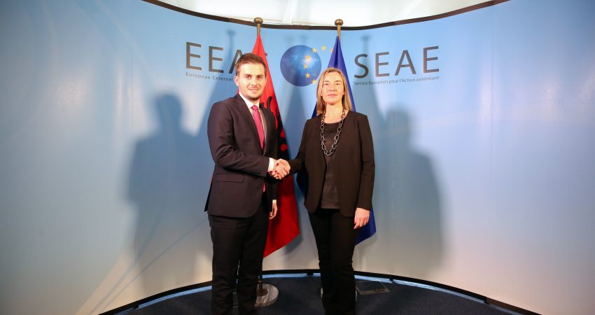 Në ditën kur po zhvillohej protesta e opozitës në Tiranë dhe ku deputetët po dorëzonin mandatet e tyre në Kuvend, ministri në Detyrë për Evropën dhe Punët e Jashtme, Gent Cakaj zhvilloi një takim në Bruksel me Përfaqësuesen e Lartë të Bashkimit Evropian për Politikën e Jashtme dhe Sigurinë, Federica Mogherini.