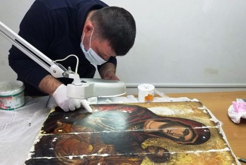 Ikona e restauruar “Shën Maria me Krishtin” ekspozohet në muzeun “Onufri”