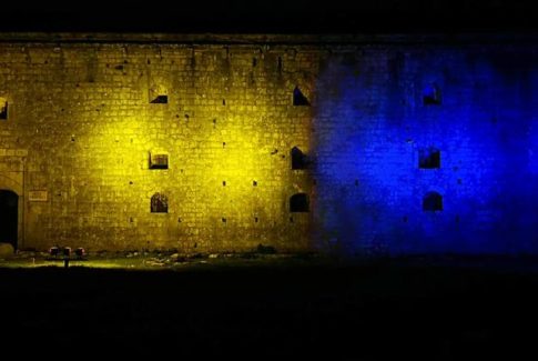 Kalaja e Rozafës “vishet” me flamurin e Ukrainës në shenjë solidariteti