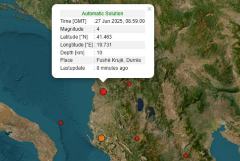 Dy lëkundje tërmeti me magnitudë 4 ballë në Tiranë, epiqendra në Fushë-Krujë