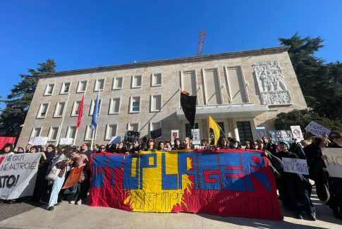 Protesta për vrasjen e Martinit, shkollës ‘Fan Noli’ i ‘vihet’ shiriti (Pamjet)