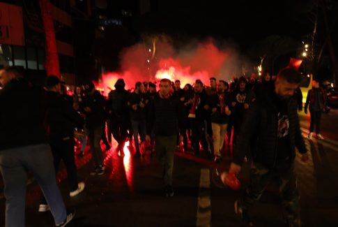 Pamjet/ Tirana ‘ngjyroset’ kuqezi. Tifozët mbushin rrugët e kryeqytetit
