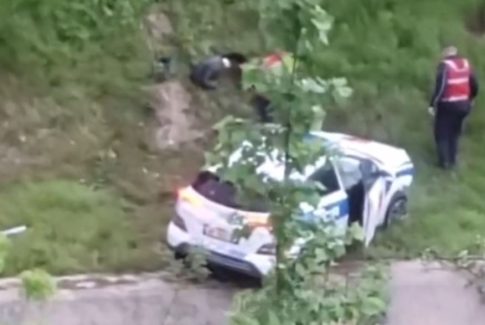 Makina e policisë humb kontrollin dhe bie në Lanë, shpëtojnë dy punonjësit