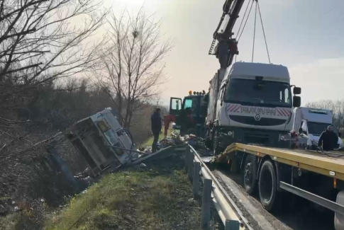 Lezhë, kamioni me mbeturina përplaset me barrierat dhe përmbyset në rrugë