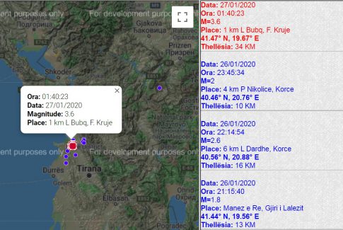 Tërmet 3.6 ballë në Bubq pas mesnate, ndihet lehtë edhe në Tiranë