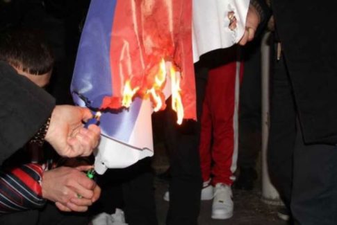 Dogjën flamujt serbë gjatë protestës së Berishës, arrestohen 2 persona