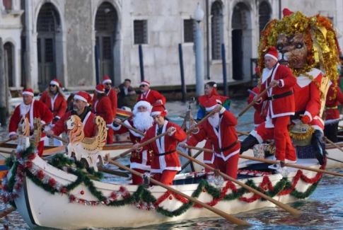 Babagjyshi i Vitit të Ri mbërrin në Venecia përmes ujit