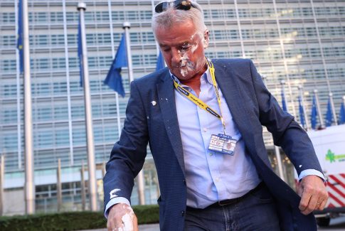 Shefi i Ryanair goditet me tortë nga aktivistet para Komisionit Evropian