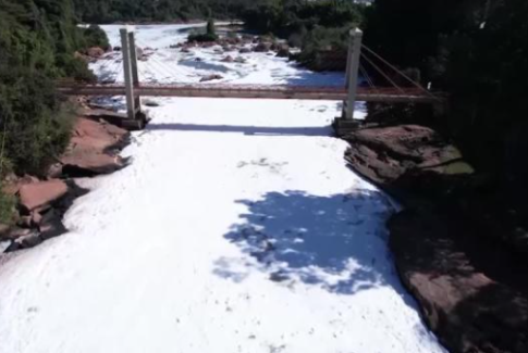 Lumi Tiete në Brazil është mbuluar me një shtresë të trashë shkume me erë të keqe për shkak të ndotjes. Shtresa vjen nga rrjedhjet e detergjentëve dhe mbetjet kimike që hidhen në lumë.